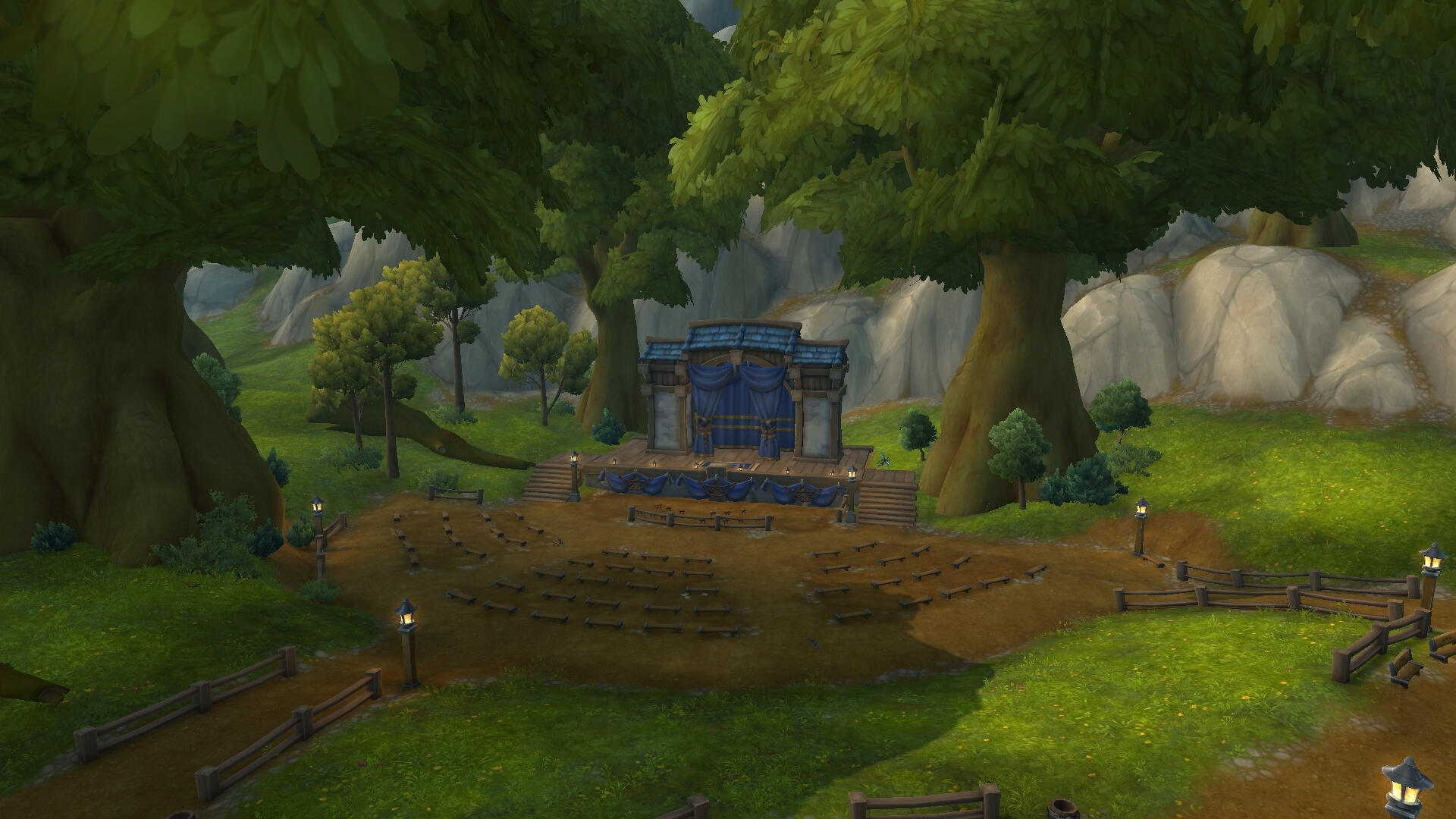 Represented by Gilded OaksThe path and the immediate areas leading up to the Greymane Manor in the zone of Gilneas, is a cliffside bordering both the sea and more mountains, making the Gilded Oaks a reasonable stand-in for this area.The Greymane Manor itself is not considered to be a part of the Neighbourhood.