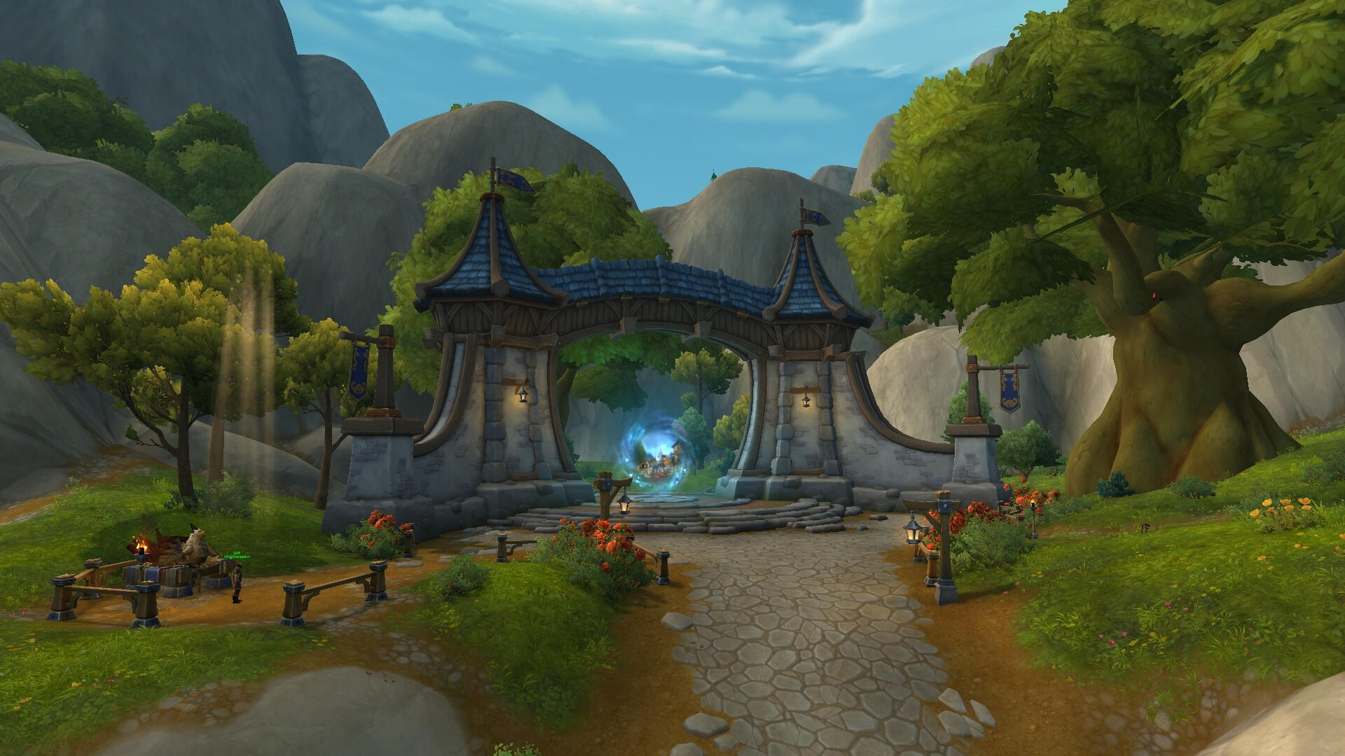 At this point in time, there's no portal between Gilneas and Stormwind in the game. However, through our RP, we consider using portals as an expensive luxury, and one that may be difficult to obtain (and maintain) between Gilneas and Stormwind in particular. With that in mind, we consider that the portal service between the two areas to be of a limited availability, and that we mostly rely on travel by boat, horse or foot.We'll be using the Tess' Peacebloom toy item (only usable by Worgen), and the ability to teleport to your plot for a seamless transition from the 'Neighbourhood Gilneas' to the actual zone of Gilneas. The actual use of these two features are OOC and isn't referenced in the RP.